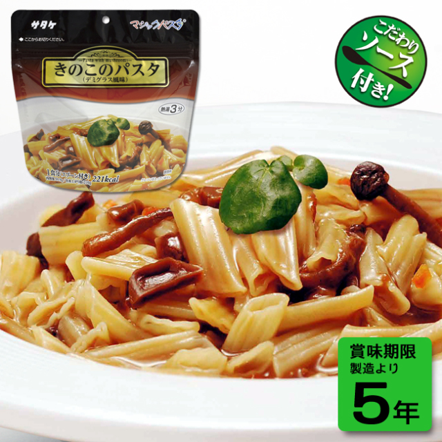 「マジックパスタ」シリーズはこれまで、旅行やレジャーでの食事としてはもちろん、非常時の備蓄用としても数多くご利用いただいています。今回のリニューアルでは、具材の小袋包装を廃止し、スプーン・脱酸素材を取り出してお湯を入れるだけで、より手軽に調理できるようになりました。また、デミグラス風味の「きのこのパスタ」が新たに登場し、「カルボナーラ」「ペペロンチーノ」とあわせて3種類のラインアップとなり、賞味期限も5年となりました。新登場の「きのこのパスタ」は、デミグラス風味のソースに、きのこの食感がアクセントとなった洋風パスタです。
